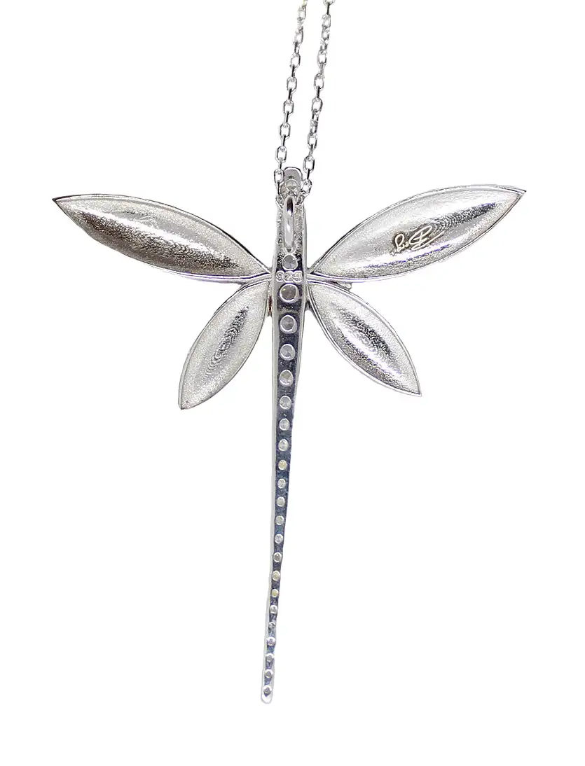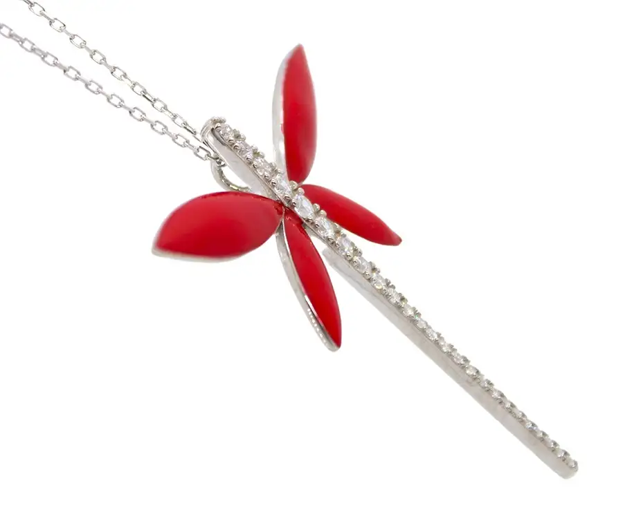 Sterling silver Bergio-designed beautiful and whimsical dragonfly with CZs and colorful red enamel wings.