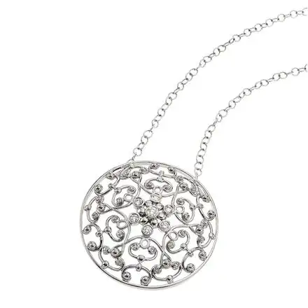 From the Bergio Byzantine collection, a Sterling Silver cubic zirconia Byzantine Medium Round Pendant. Subtle enough for a contemporary chic ensemble, yet unveils Italian inspired elegance.