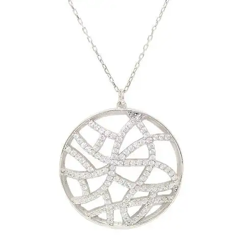Sterling silver cubic zirconia Bergio signature design “Safari Collection” large round pendant necklace. Safari Large Round Pendant exudes exotic allure with playful openwork inspired by European design.