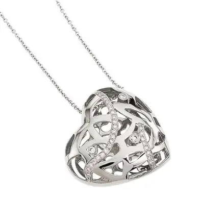 Sterling silver cubic zirconia Bergio signature design “Safari Collection” small heart pendant necklace. Safari Small Heart Pendant exudes exotic allure with playful openwork inspired by European design. The heart is 1 inch wide at its widest and 1 inch high. The 24-inch chain loops through the heart.