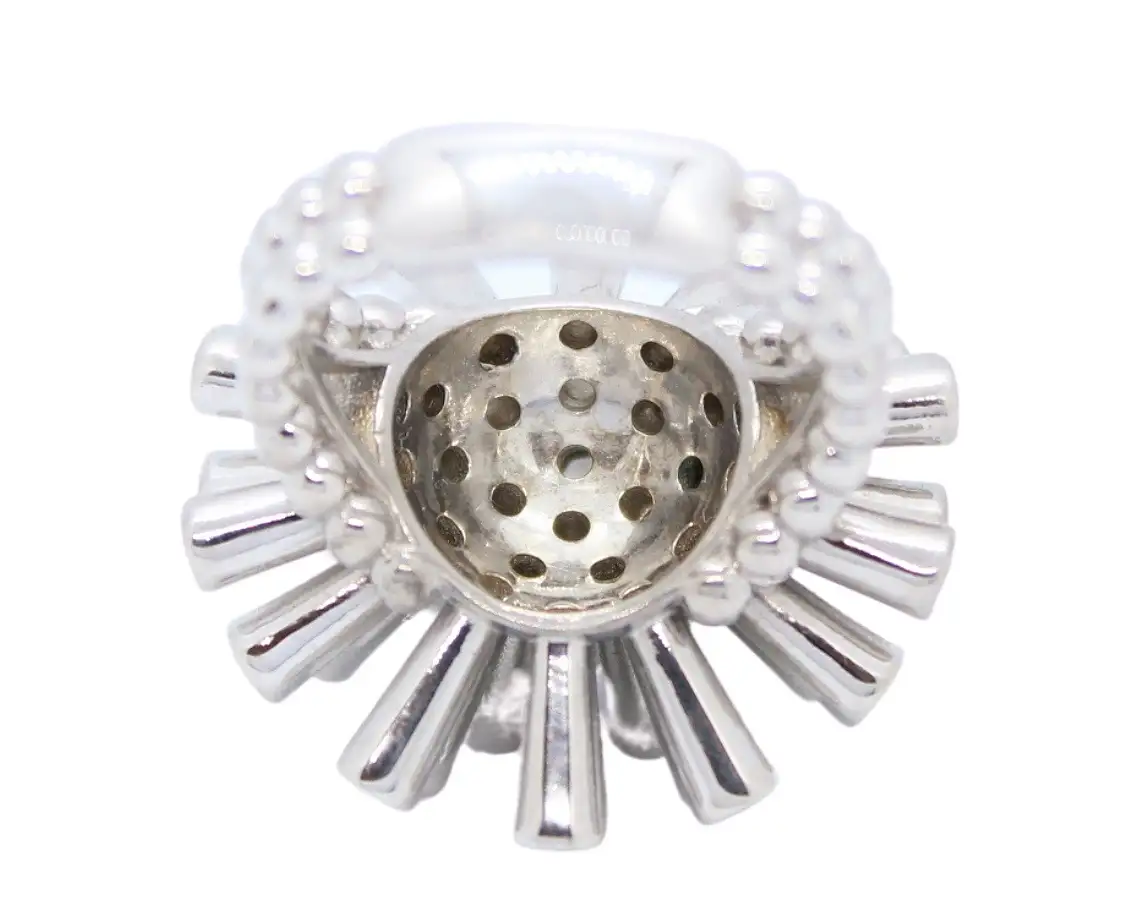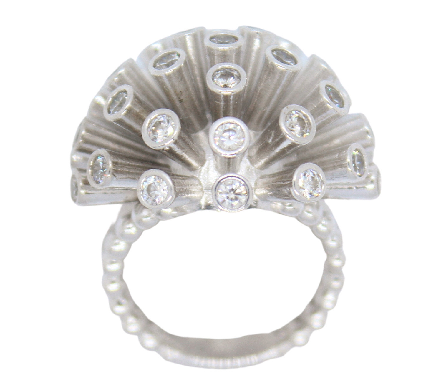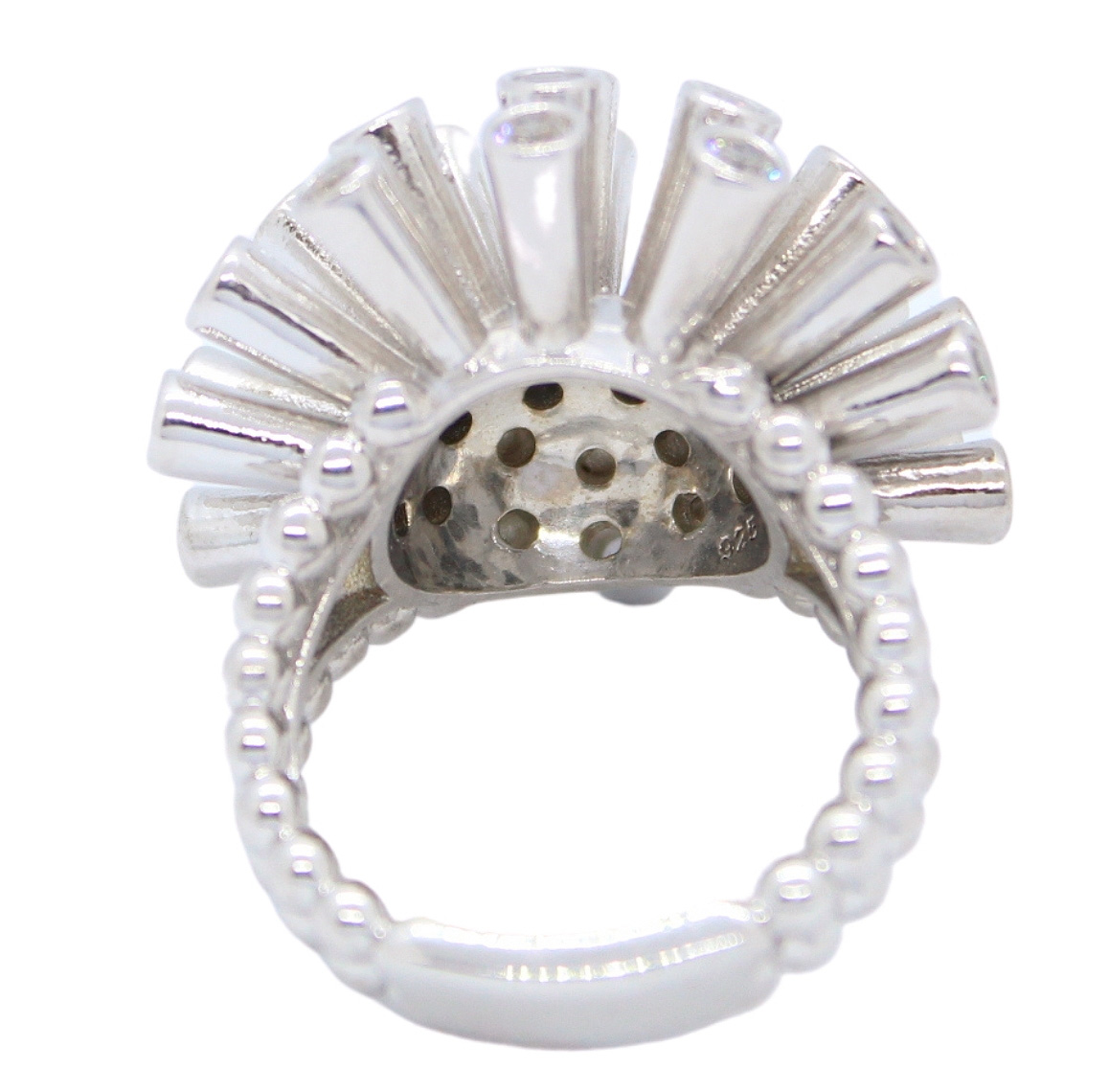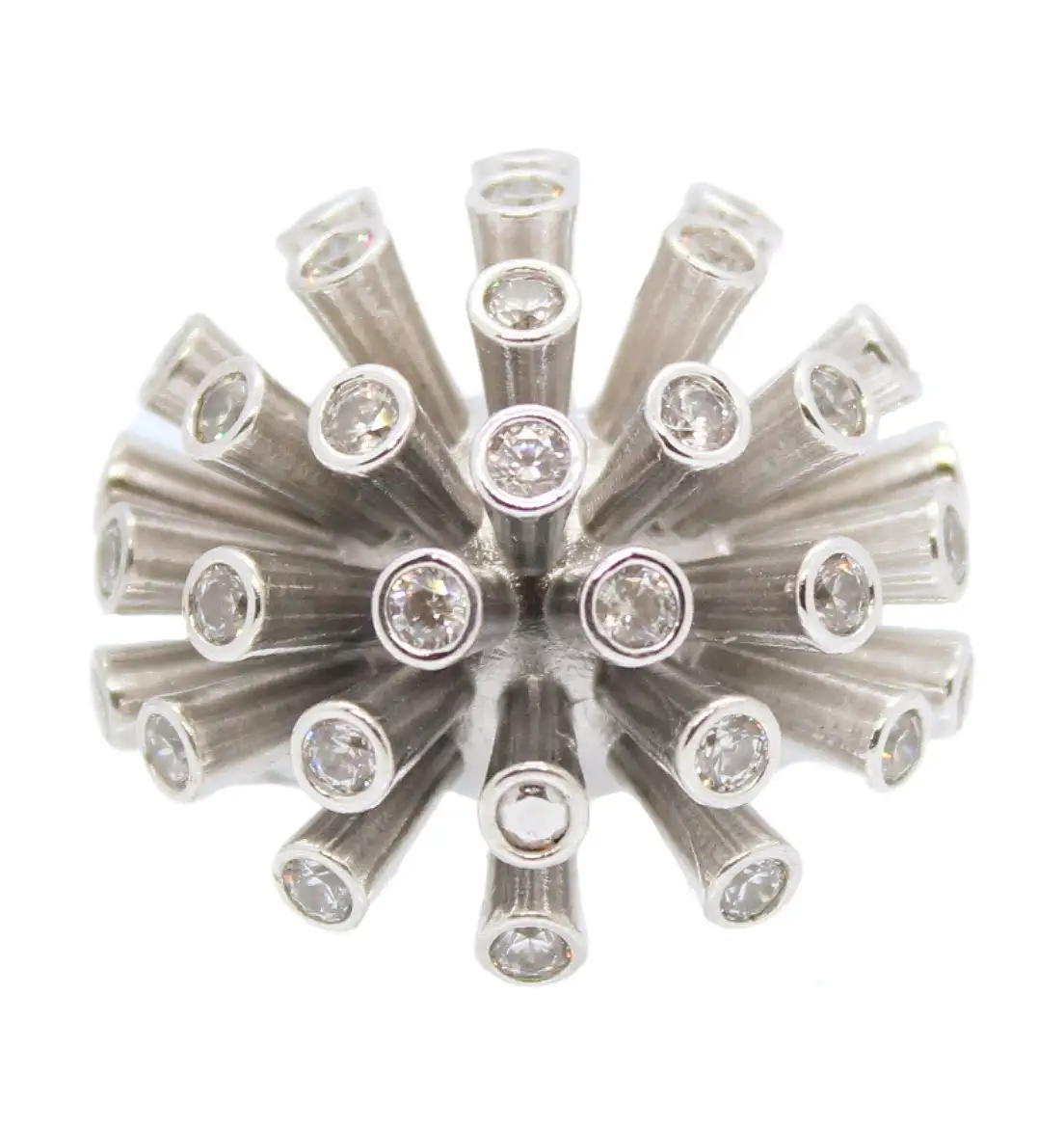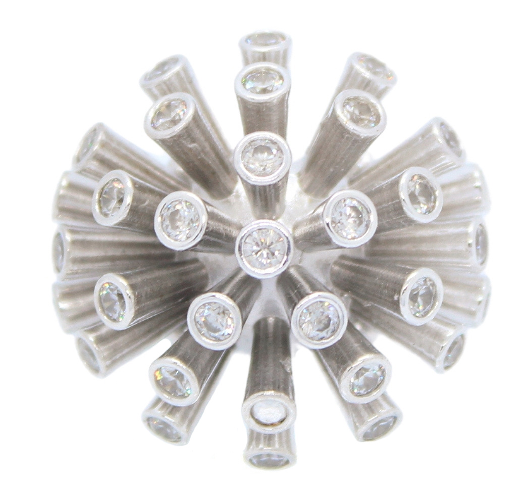 A brilliant dome ring that resembles a explosion from a firework. Sterling and Cubic Zirconia Item# 662-00205