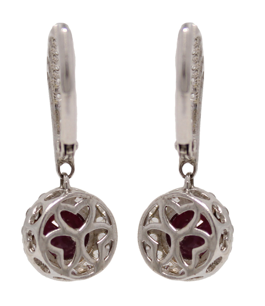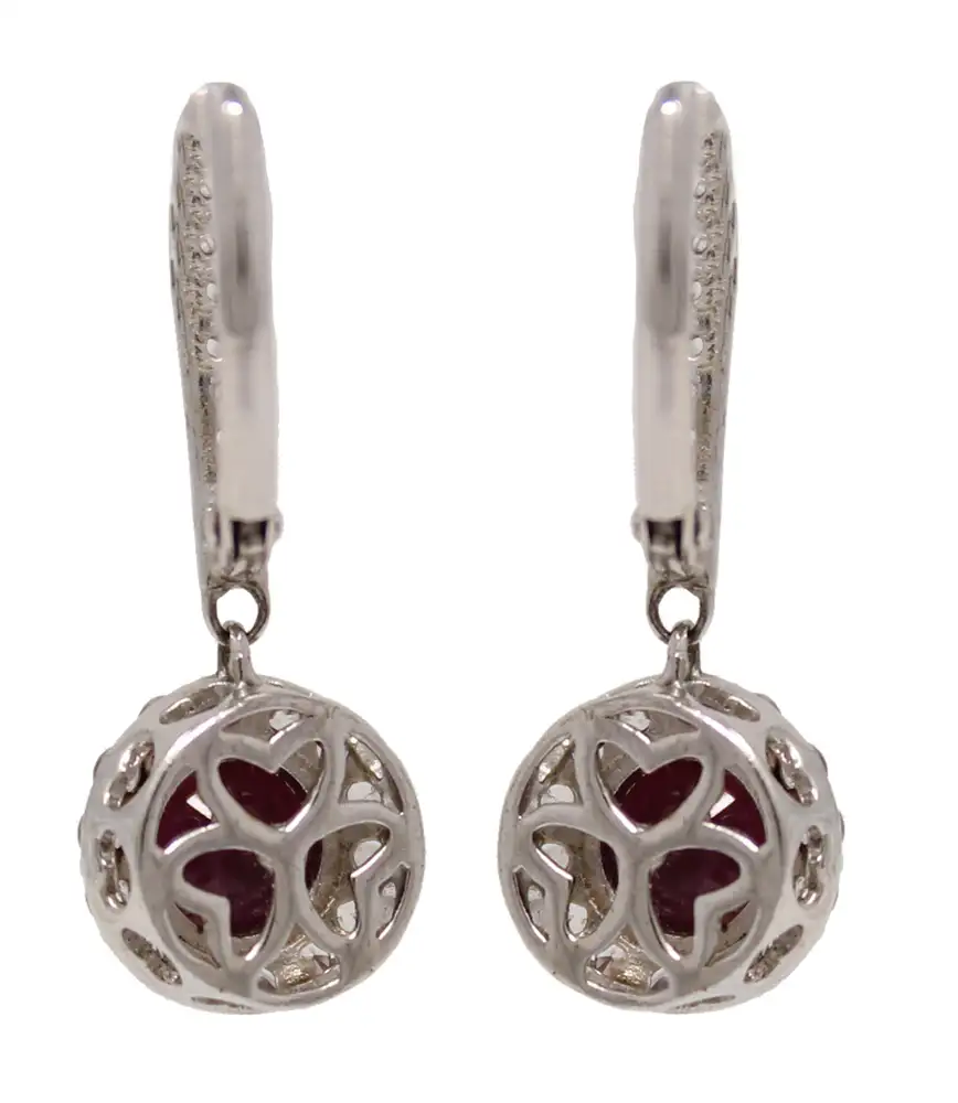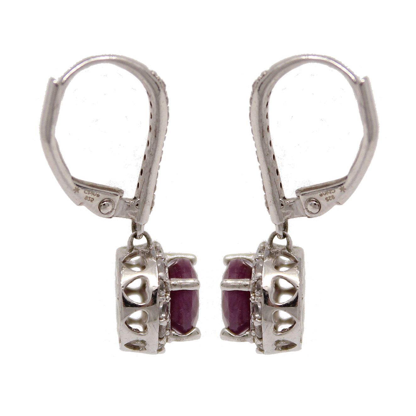 Sterling silver red gemstone and CZ lever back dangle earrings. Earrings are 3/8 inch wide at their widest and drop approximately 1 inch.