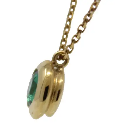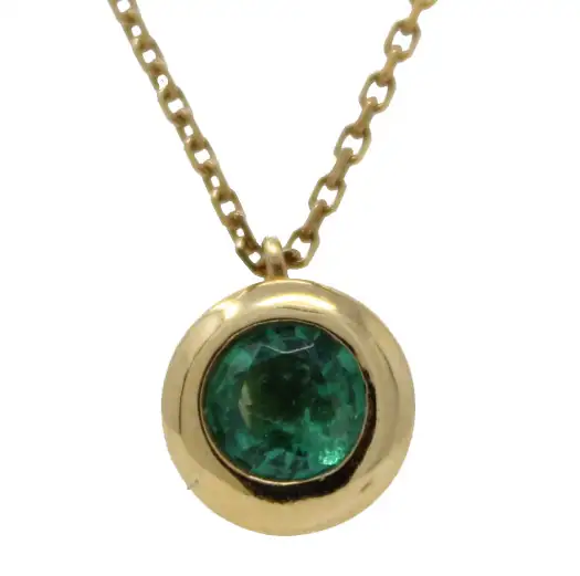 14K Yellow gold bezel set .45ct round emerald pendant necklace.