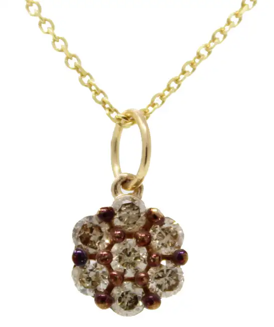 10K Yellow gold diamond cluster pendant with seven diamonds weighing 0.24cttw