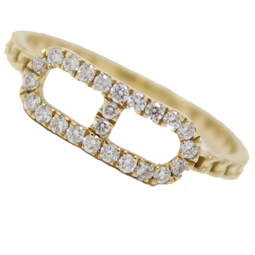 The ring head is a rounded rectangle and has 24 flat-mounted diamonds with a total diamond weight of .21cttw.