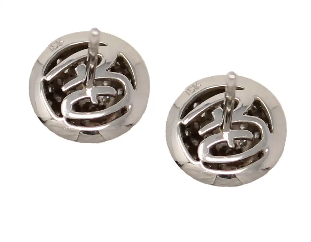 18K white gold diamond button post earrings. Earrings are approximately 1/2 inch diameter. They have 110 individually set round diamonds weighing 1.42cttw.