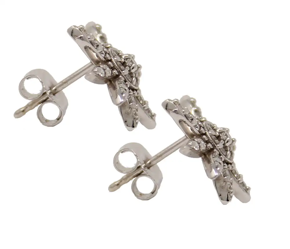14K white gold diamond starburst post earrings. Earring diameter is approximately 1/2 inch. Diamonds weigh 0.88cttw.