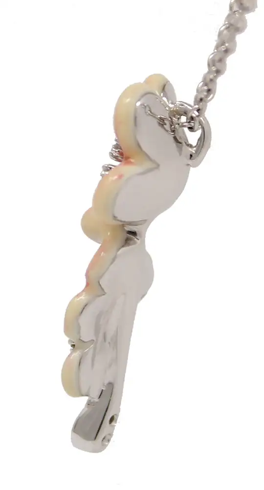 18K white gold hand-painted enamel pink flower pendant necklace. The three enamel flowers are accented with round diamonds weighing 0.13cttw.