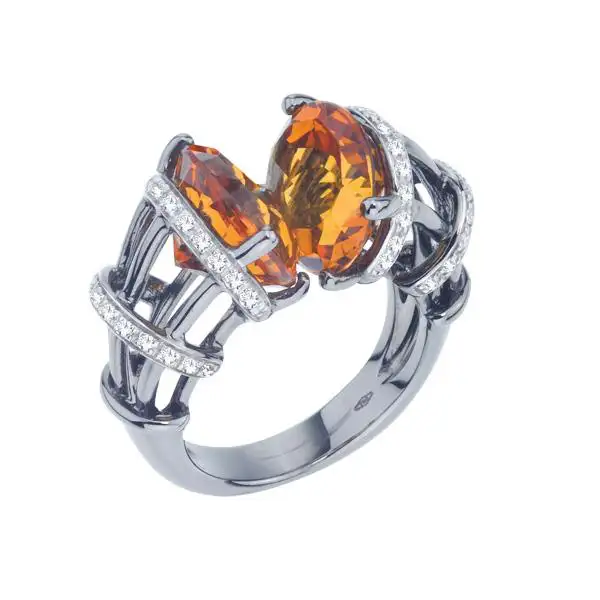 Bergio Faccia a Faccia Ring: 18 Karat White Gold with White Diamonds at 0.27 Carat Total Weight, Citrine at 3.27 Carat Total Weight, & Palmeira at 3.24 Carat Total Weight (B4753-A35)