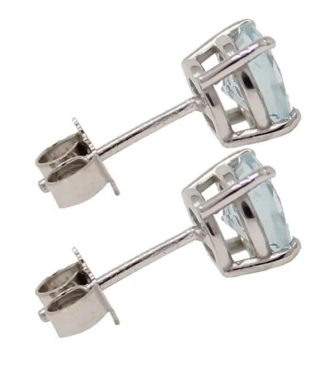 14K white gold round aquamarine post earrings. Diameter of the round aquamarines is 6mm.