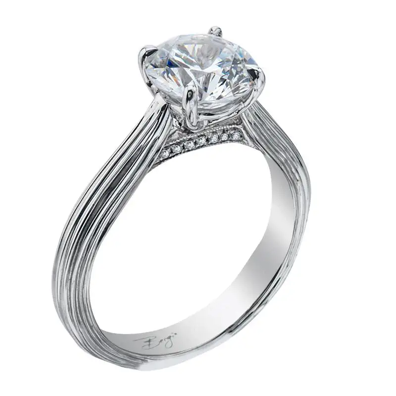 Custom Bergio Semi-Mount: 18 or 14 Karat Gold Mounting with 14 White Round Diamonds at 0.04cttw.