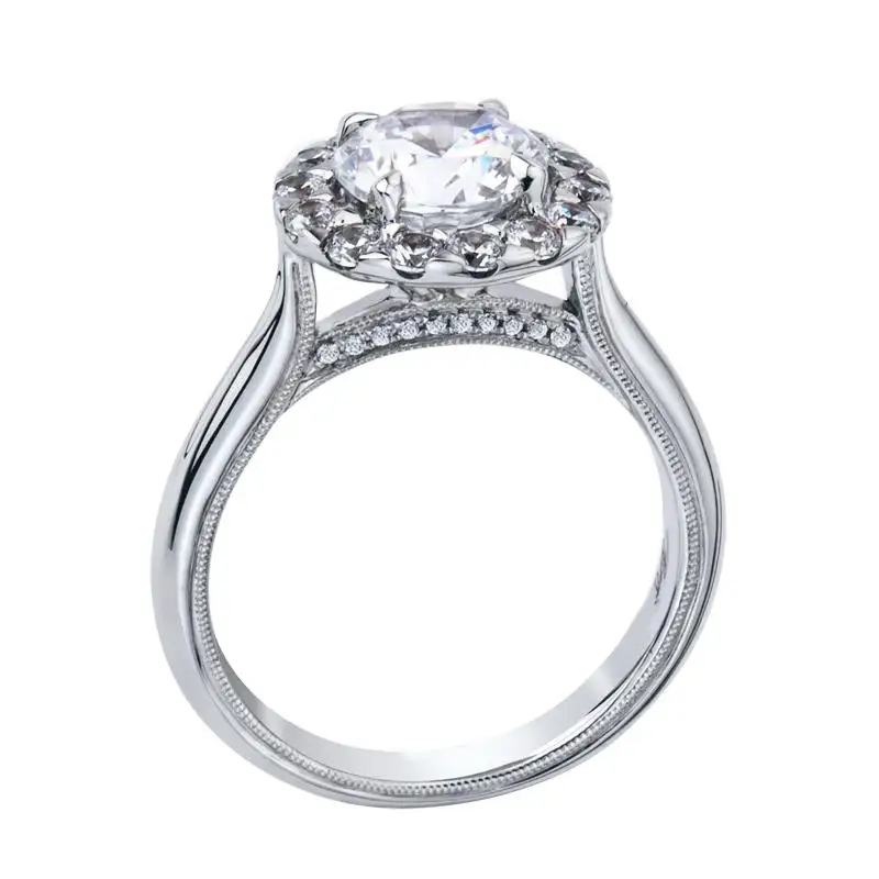 We custom make this ring to accommodate any size center stone. Contact us to discuss design and stone options.