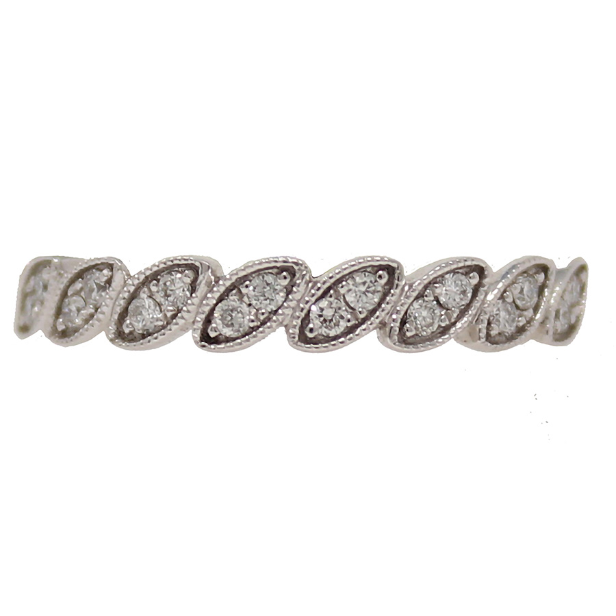 14K white gold (weighing 2.17 grams) diamond ring. The 28 individually set round diamonds have a total weight of .16cttw.