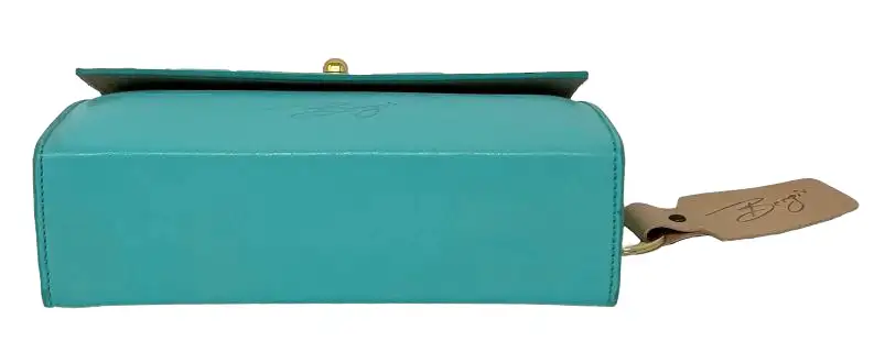 Fine Italian Leather Color: AQUA plain leather Shoulder strap included Dust cover included Marsupio
