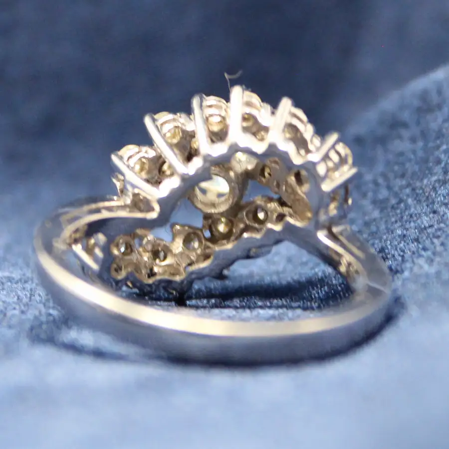 14K white gold double-arced cocktail ring.