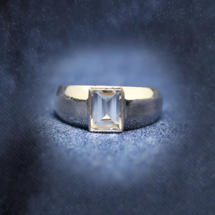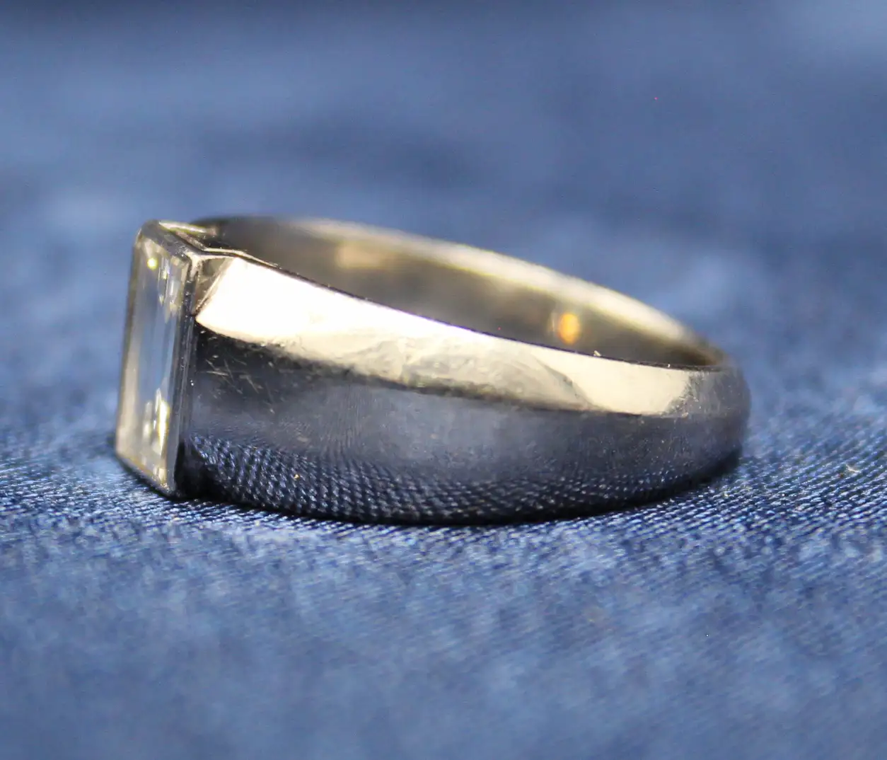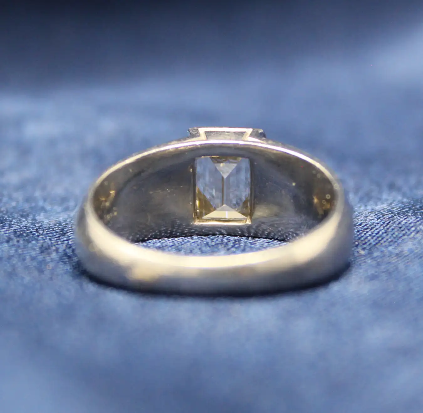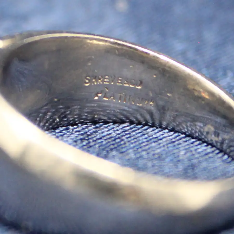 Shreve & Co platinum ring with a step-cut center diamond weighing approximately 0.1cttw. Clarity VVS; color I.